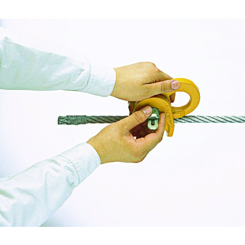 ●レバーブロック、チェーンブロックなどとワイヤロープとの併用作業用に開発されたワイヤロープ専用固定器具です。