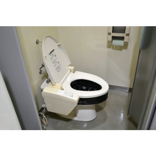 ●便座をのせ、しっかりと汚物袋を固定させます。