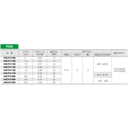 スーパー 切削ローレット駒(平目用)ピッチ:1.8 外径A:21.5 KNCF2118R