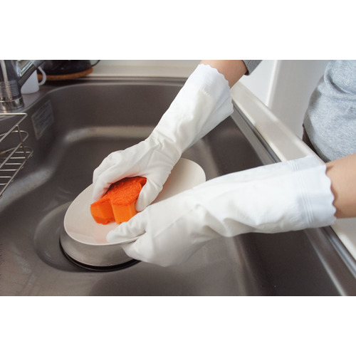 ●塩化ビニール製のため、天然ゴム製の手袋に比べて、洗剤や油に対して耐久性があります。