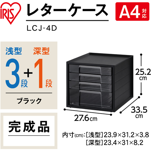 IRIS 207063 レターケース LCJ-4D-BK 4段 ブラック LCJ-4D-BK