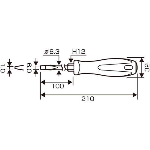 ●先端形状はカムアウトしにくい構造になっており(プラスはACR[[R上]]・マイナスはギザ付)、ねじから刃先が浮き上がるのを防止します。