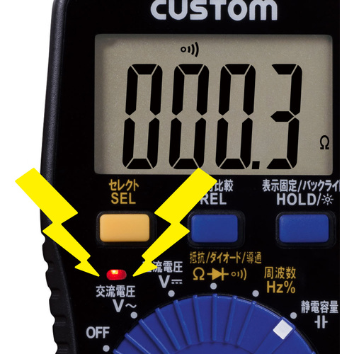 ●コンパクトなボディーに電圧(直流、交流)、抵抗、周波数、静電容量、導通チェック機能(ブザー、LED)、ダイオードチェック機能を持たせた、小型軽量のデジタルマルチメータです。