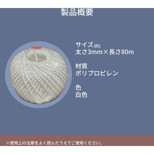 ユタカメイク 荷造り紐 PSロープ玉巻 3mm×80m ホワイト M176