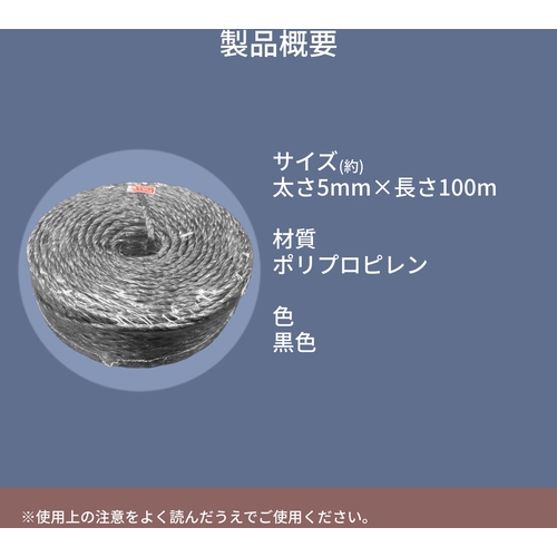 9. ユタカメイク PSロープ 黒色 5mmx100m M-215BL