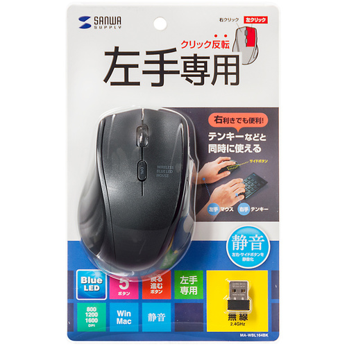 SANWA 静音ワイヤレスマウス左手用 MA-WBL164BK