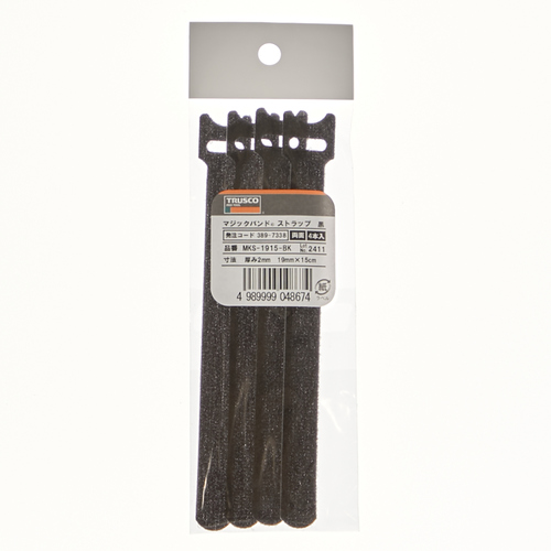TRUSCO マジックバンド ストラップ 15cm 黒 (4本入) MKS-1915-BK