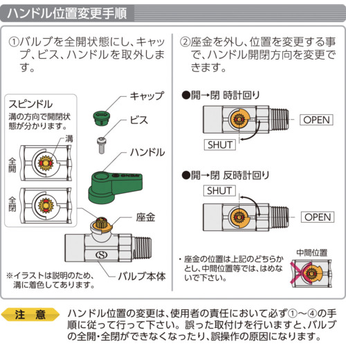 ●配管都合によりハンドル位置・開閉方向を自由に変更できます。