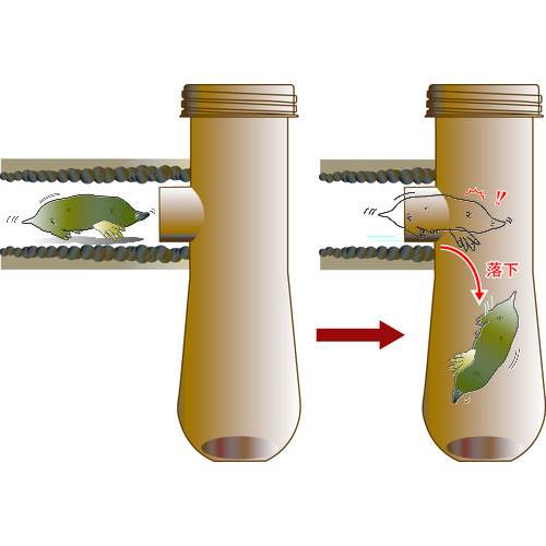 ●モグラ進入口を楕円形にし、モグラの掘った穴にあわせているため、進入しやすいです。