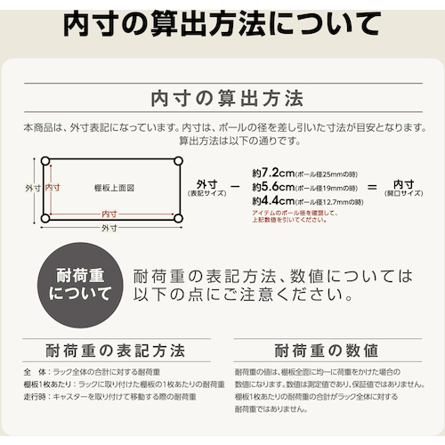 ●集中荷重になりますと、耐荷重能力は半減します。必ず均等に荷重を分散させてご使用ください。