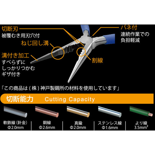 ●割り込み、皮むき、ボルト回しもこなせる便利な多機能タイプです。