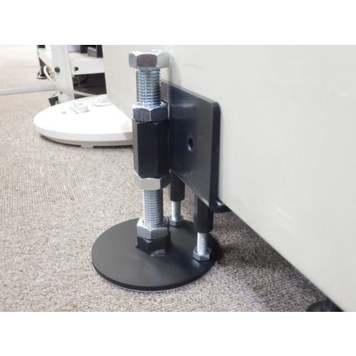 ●床に接着した円盤に連結されたL板で設備・装置の底面を接着固定します。