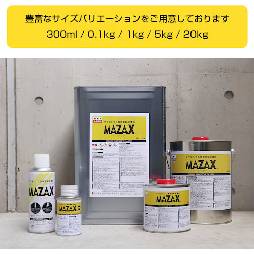 ●主成分:亜鉛粉末、亜鉛フレーク粉末、アルミペースト、アルマグ合金粉末、エポキシ樹脂、添加剤、溶剤