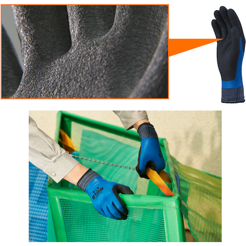 ●3層構造で手にフィットし、すべり止めが効きながらムレにくいフルコート手袋です。