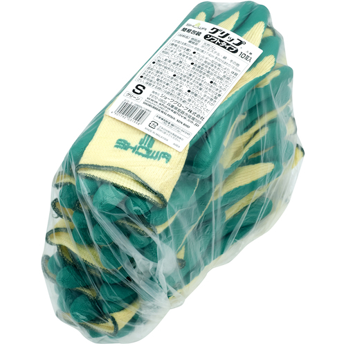 SHOWA 天然ゴム背抜き手袋 まとめ買い 簡易包装グリップ(ソフトタイプ) 10双入 グリーン Sサイズ NO310-S10P