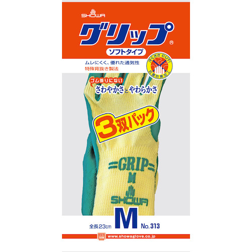 SHOWA 天然ゴム背抜き手袋 NO313グリップ(ソフトタイプ) 3双入り グリーン Mサイズ NO313-MGN
