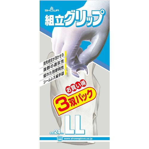 SHOWA ニトリルゴム背抜き手袋 組立グリップ3双パック グレー LLサイズ NO370-LL-3P