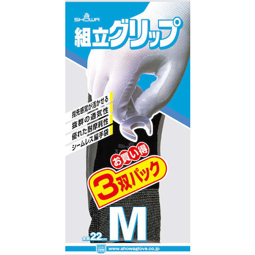 SHOWA ニトリルゴム背抜き手袋 組立グリップ3双パック ブラック Mサイズ NO370-M-3PBK