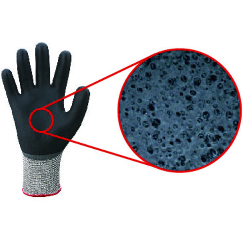 ●手のひらには発泡ニトリルゴムの特殊すべり止め層をコーティングしており、高いすべり止め効果を発揮します。