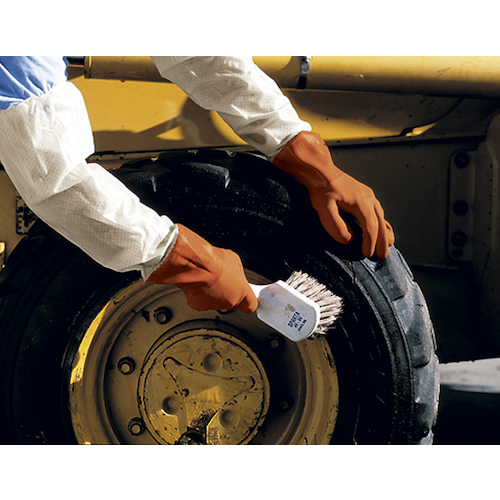 ●柔軟性に優れたニュービニローブに肩口までの腕カバーを付け、水や汚れから腕全体を保護します。