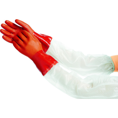 SHOWA 腕カバー付手袋 No645腕カバー付ニュービニローブ オレンジ/ホワイト Mサイズ NO645-M