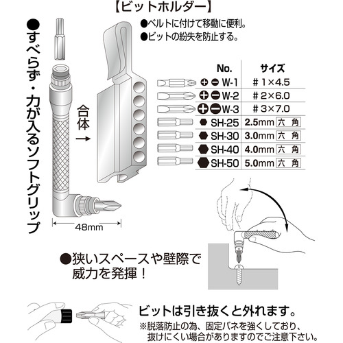 ●刃先:両頭[[+]]1×[[-]]4.5、[[+]]2×[[-]]6、[[+]]3×[[-]]7、六角2.5、3、4、5
