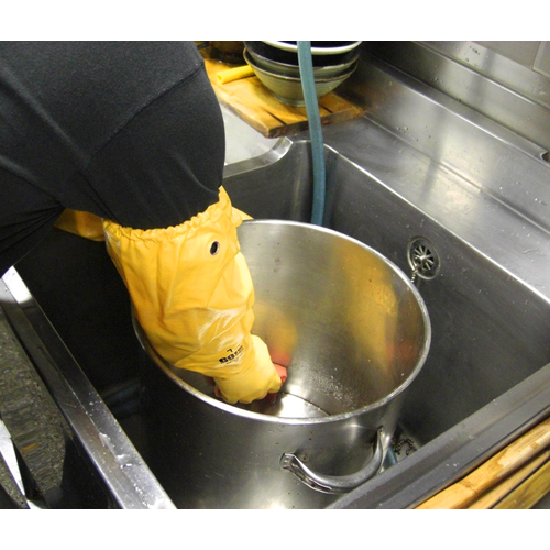 ●指先から肩口まで継ぎ目のない一体型ニトリル製ロング手袋です。
