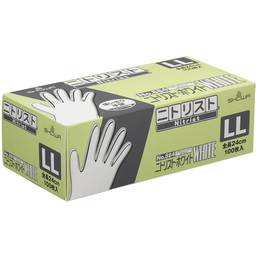 SHOWA ニトリルゴム使い捨て手袋 No884 ニトリスト・ホワイト 100枚入 LLサイズ NO884-LL