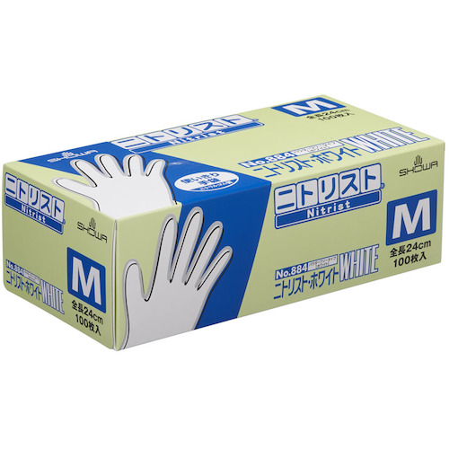 SHOWA ニトリルゴム使い捨て手袋 No884 ニトリスト・ホワイト 100枚入 Mサイズ NO884-M