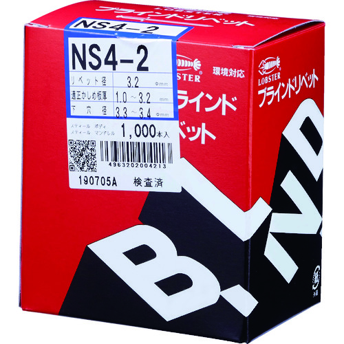エビ ブラインドリベット(スティール/スティール製) 4-2(1000本入) 箱入 NS42