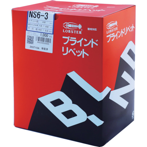 エビ ブラインドリベット(スティール/スティール製) 6-3(1000本入) 箱入 NS63