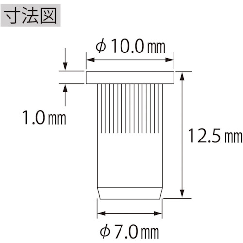 ●先端テーパーになっていますので、下穴に入りやすく自動打ちなどに最適です。