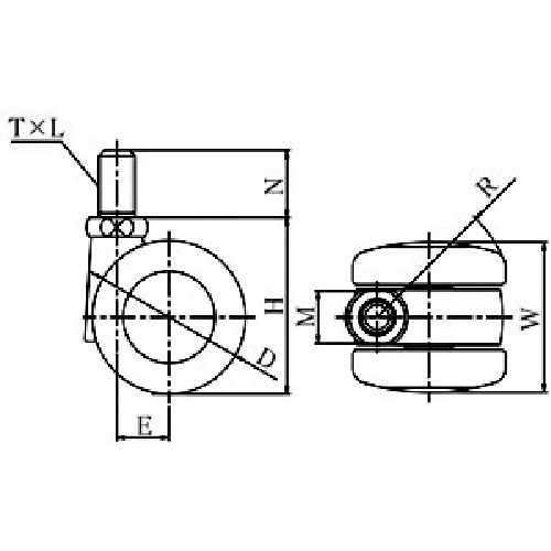 ユーエイ ねじ込み式 自在 双輪キャスター ナイロン 車輪径60mm  OTHERS P型 ネジ寸法M12×22ピッチ1.75 P-60T