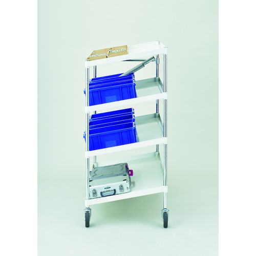 ●棚板に傾斜がある(D=500の場合12°、D=600の場合は10°)ので、物の出し入れが頻繁な作業に適しています。