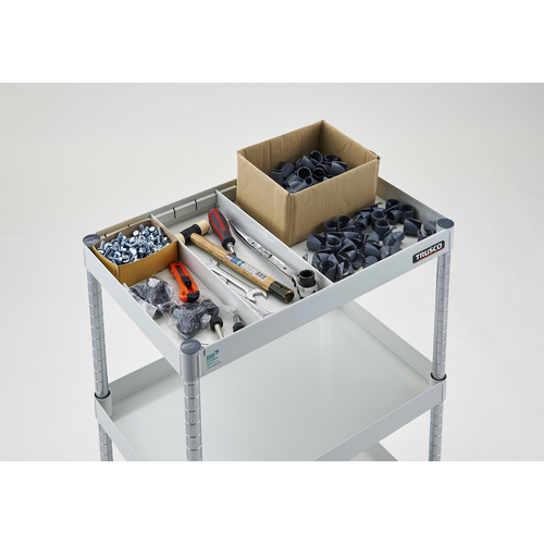 ●仕切板付の棚板で細かな部品や工具を整理できます。