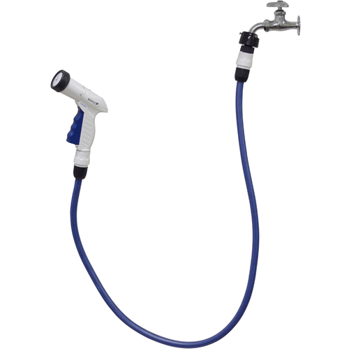 ●水道蛇口と高圧洗浄機をワンタッチで接続できる送水用ホースです。