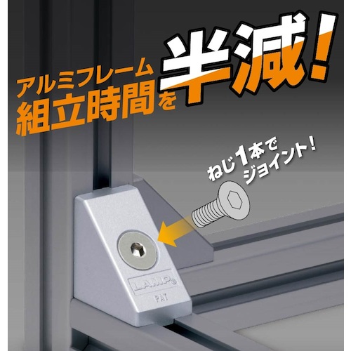 ●ナットが不要、位置決め不要、ねじ1本でアルミフレームを簡単にジョイントできるので、作業時間が短縮できます。