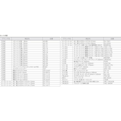 ●工具内容は、市場NO.1メーカーで品揃えしています。