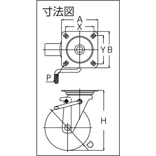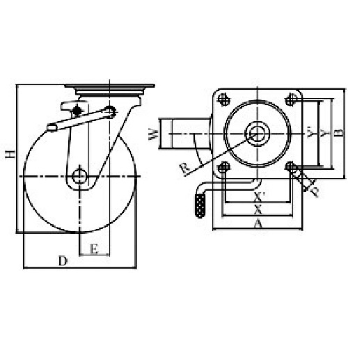 ユーエイ プレート式 自在 キャスター ゴム 車輪径130mm ストッパー付き PMタイプ PMS-LB(R)型 取付寸法90×90(80×80) PMS-130WBLB(R)