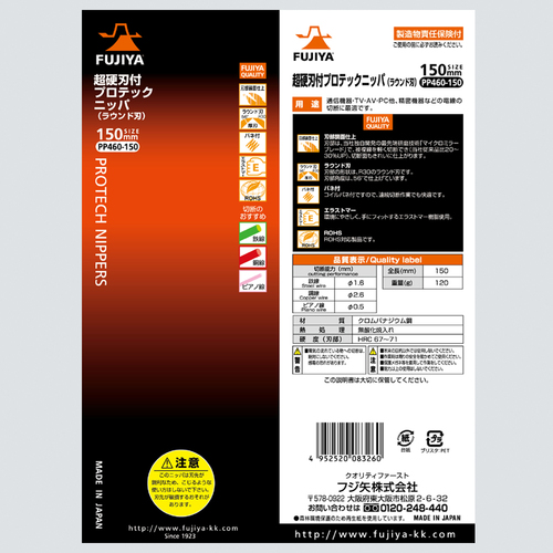 フジ矢 プロテックニッパ超硬刃付 150mm PP460-150