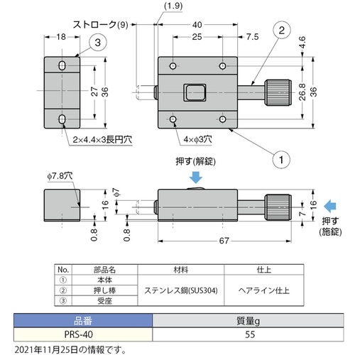 ●スガツネ工業 ステンレス鋼製プッシュラッチ PRS-40(140-049-402