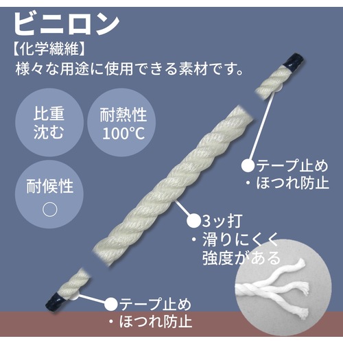 ●手触りが良く扱い易い、耐候性、耐久性に優れた強度の強いロープです。