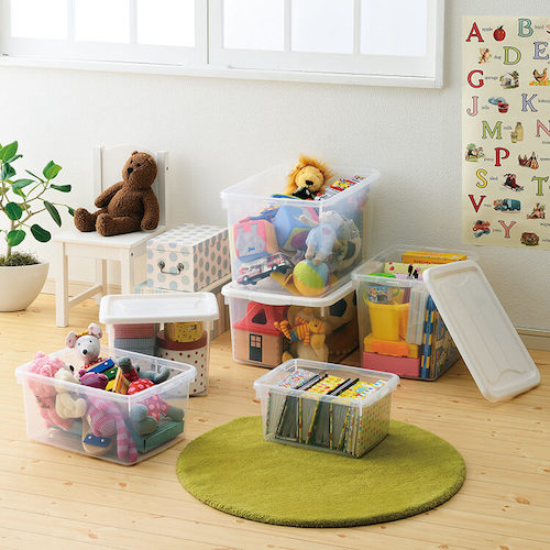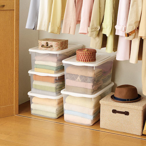 ●ワンタッチ開閉できるロックが付いた、浅深サイズがそろったフタ式収納です。