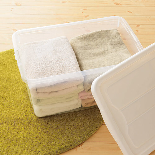 ●ワンタッチ開閉できるロックが付いた、浅深サイズがそろったフタ式収納です。