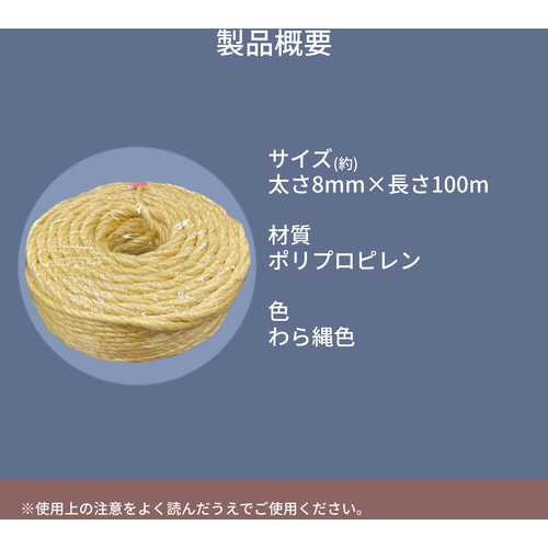 ユタカメイク PSロープ わら縄色 8mm×100m PS8100WR