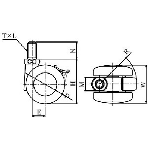 ユーエイ ねじ込み式 自在 双輪キャスター ナイロン 車輪径40mm ストッパー付き OTHERS PT型 ネジ寸法M8×15ピッチ1.25 PT-40TS-M8