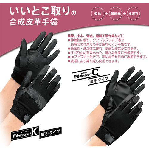 ミドリ安全 合成皮革手袋 薄手タイプ PUウイングローブC Sサイズ 1双 PU-WINGLOVE-C-S