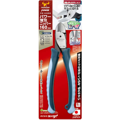 TTC POWER 薄刃ニッパー 全長172mm PW-332DG
