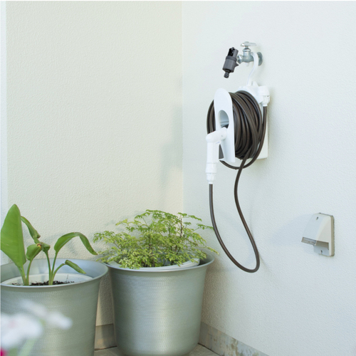 ●ベランダや狭い場所での散水に最適なコンパクトタイプのホースリールです。