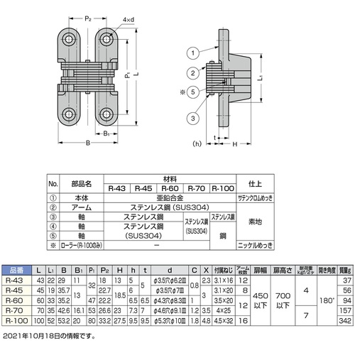 9. SUGATSUNE (170090084)R-45ルーター用隠し蝶番 R-45